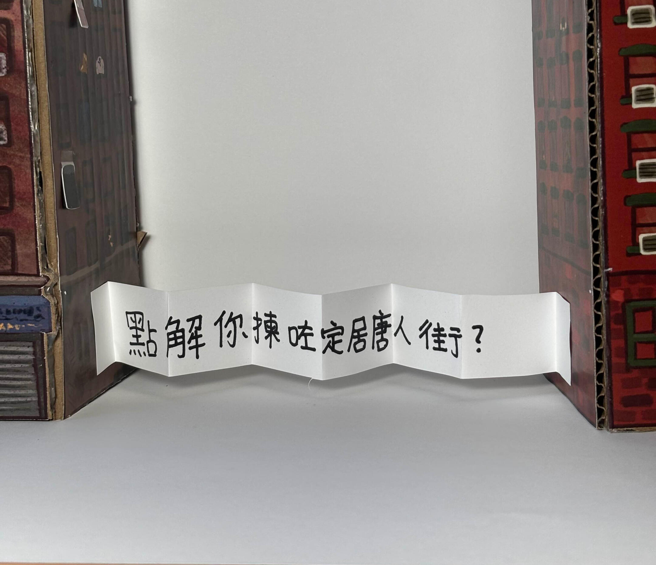 What goes on in the life of people in Chinatown? People of all ages and backgrounds live in Chinatown. This is an interactive book that asks the question, "Why did you choose to settle in Chinatown?" in Cantonese, Mandarin, and English—three main languages spoken, while exploring the mundane lifestyle inside the tight apartments.